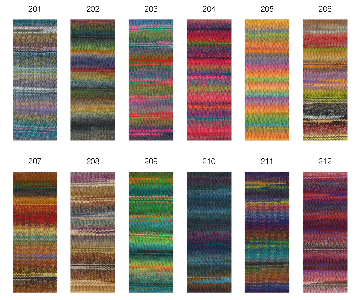 Colorissimo fra Lana Grossa er et mykt og eksklusivt effektgarn i 100 % merinoull med nydelige, lange fargeskift. Garnet gir liv og dybde til både enkle og mer avanserte strikkeprosjekter, uten at du trenger å bytte farge selv.