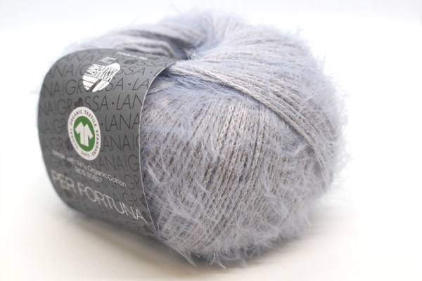 Per Fortuna fra Lana Grossa er et luksuriøst og eksklusivt effektgarn med vakker tweedstruktur og delikate fargespill. Garnet kombinerer myk merinoull med alpakka og bomull, noe som gir en lett, luftig og behagelig kvalitet med spennende tekstur.